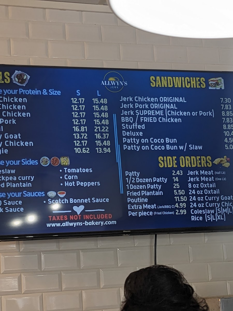 Allwyn's Jerk (Etobicoke) Menu