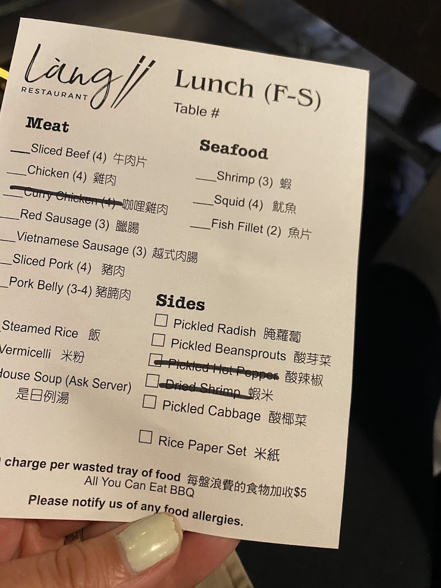 Chuck's Place Menu